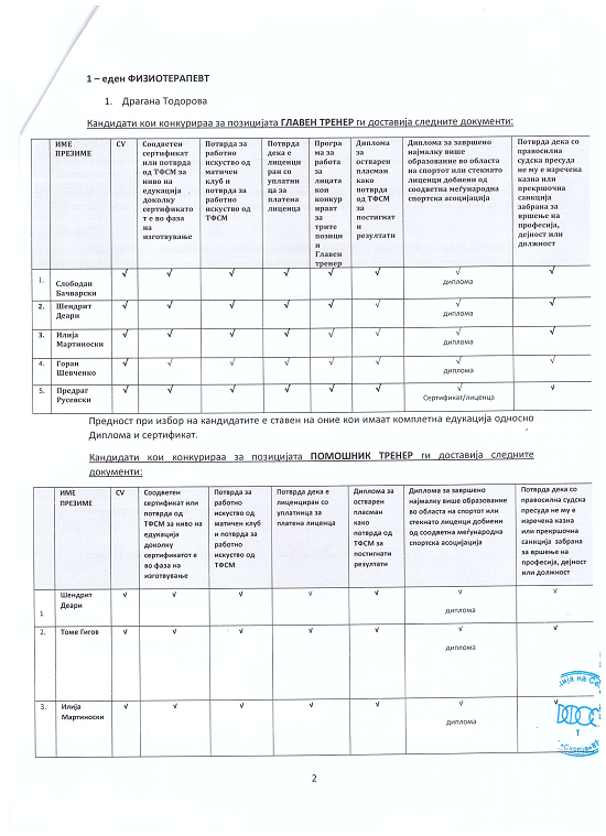 За позиција ПОМОШНИК ТРЕНЕР (двајца):